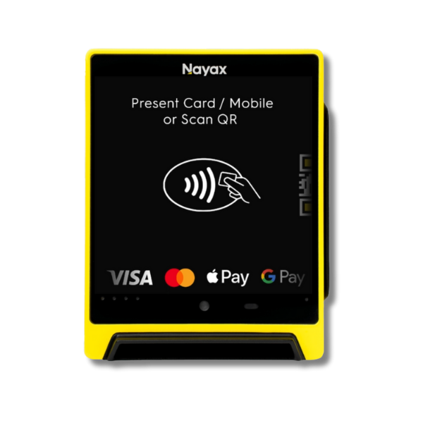 Nayax-maksupäätteet ovat helppokäyttöisiä ja tehokkaita kortinlukijoita, jotka hyväksyvät yli 80 eri maksutapaa, kuten pankki- ja luottokortit, mobiilimaksut, QR-koodit ja prepaid-kortit.