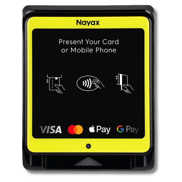 Nayax-maksupääte on helppokäyttöinen ja tehokas kortinlukija, jolla voi maksaa lähimaksulla, sirumaksulla tai mobiilimaksulla. Nayax-maksupääte on suunniteltu miehittämättömiin palvelupisteisiin, kuten kuten itsepalvelupesuloihin tai taloyhtiön pesutupiin.